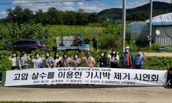 À̹ø ½Ã¿¬È¸´Â ÇѰæ´ë »êÇÐÇù·Â´ÜÀÌ °³¹ßÇÑ »ýÅÂ°è ±³¶õ ½Ä¹° Á¦°Å ÃÖÀûÈ ±â¼úÀ» µµ³» 15°³ ½Ã±º °ü°èÀÚ¿¡°Ô ¼±º¸ÀÌ´Â ÀÚ¸®·Î, ¹æÁ¦ ±â¼ú¡¤Àåºñ ¼³¸í ¹× ½Ã¿¬, »ýŰ豳¶õÁ¾ ÅðÄ¡ ¹æ¾È¡¤°èȹ ³íÀÇ µîÀÇ ¼øÀ¸·Î ÁøÇàµÆ´Ù.