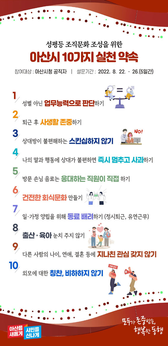 ¾Æ»ê½Ã(½ÃÀå ¹Ú°æ±Í)°¡ ¾ç¼ºÆòµî Á¶Á÷¹®È Á¶¼ºÀ» À§ÇØ ¡®¾Æ»ê½Ã 10°¡Áö ½Çõ ¾à¼Ó¡¯À» ¼±Á¤Çß´Ù°í 9¿ù 2ÀÏ ¹àÇû´Ù.