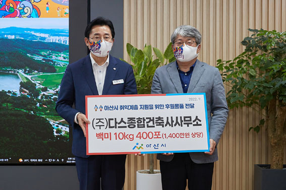 | | ¡è¡è ¡ã¹é¹Ì ÈÄ¿ø ±â³ä»çÁø. ¹Ú°æ±Í ½ÃÀå(¿ÞÂÊ)°ú À̹®±Ô ´ëÇ¥ <»çÁøÁ¦°ø=¾Æ»ê½Ã> | ¨Ï ¿Â¾ç½Å¹® | | (ÁÖ)´Ù½ºÁ¾ÇÕ°ÇÃà»ç»ç¹«¼Ò(´ëÇ¥ À̹®±Ô, ¿Âõµ¿ ¼ÒÀç)°¡ Áö³ 9¿ù 2ÀÏ ¾Æ»ê½Ã(½ÃÀå ¹Ú°æ±Í)¸¦ ¹æ¹®ÇØ Â÷»óÀ§ °èÃþ Áö¿øÀ» À§ÇÑ 10kg ¹é¹Ì 400Æ÷¸¦ ÈÄ¿øÇß´Ù. ÈÄ¿øµÈ ¹°Ç°Àº À¾¸éµ¿ ÇàÁ¤º¹Áö¼¾Å͸¦ ÅëÇØ ´ë»óÀڵ鿡°Ô Àü´ÞµÉ ¿¹Á¤ÀÌ´Ù.
