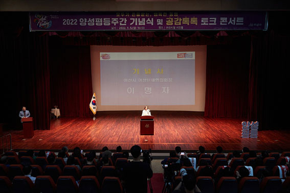 ¹Ú ½ÃÀåÀº Çà»ç ½ÃÀÛ¿¡ ¾Õ¼ ¡°¾Æ»êÀº ¾ç¼ºÆòµîÀ» À§ÇØ ³ë·ÂÇÏ´Â ¡®¿©¼ºÄ£Èµµ½Ã¡¯¡±¶ó¸é¼µµ ¡°¡®¿©¼ºÄ£Èµµ½Ã¡¯¸¦ ÁöÁ¤ÇÑ´Ù´Â °Í ÀÚü°¡ ¾ÆÁ÷±îÁö ¿ì¸® »çȸ°¡ ¿©¼º¿¡°Ô ºÒÆòµîÇÑ, ºÎÁ·ÇÔÀÌ ¸¹Àº »çȸ¶ó´Â ¹ÝÁõÀÌ ¾Æ´Ñ°¡ ½Í´Ù¡±°í ¸»Çß´Ù.