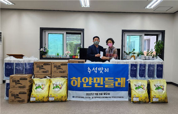 ÇÑÆí û¼Ò³â¹üÁË¿¹¹æÀ§¿øÃµ¾È¾Æ»êÁö¿ªÇùÀÇȸ ¾Æ»êÁö±¸´Â ¸Å³â ¼³°ú Ãß¼®¸íÀý¸¶´Ù µµ¿òÀÇ ¼Õ±æÀÌ ÇÊ¿äÇÑ »çȸº¹Áö½Ã¼³À» ¹æ¹®ÇØ »ýÇÊǰ°ú Áö¿ø±ÝÀ» Àü´ÞÇϸç ÀÌ¿ô»ç¶ûÀ» ½ÇÃµÇØ¿À°í ÀÖ´Ù.
