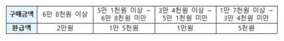 ȯ±ÞÀº ¼ÒºñÀÚ°¡ ÇØ´ç ½ÃÀå¿¡¼ ±¹³»»ê ¼ö»ê¹°À» ±¸¸ÅÇÏ°í ½ÃÀå ³»¿¡ ¼³Ä¡ÇÑ Çà»ç °ø°£À» ã¾Æ ¿µ¼öÁõÀ» Á¦ÃâÇÏ¸é ´çÀÏ ±¸¸Å ±Ý¾×ÀÇ 30%(1Àδç 2¸¸ ¿ø Çѵµ)¸¦ ¿Â´©¸® »óǰ±ÇÀ¸·Î ¹ÞÀ» ¼ö ÀÖ´Ù.