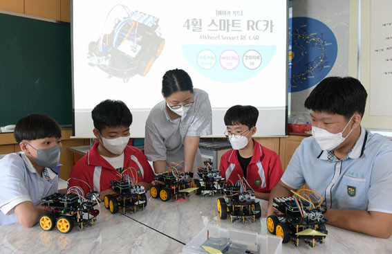 ƯÈ÷, 8ÀÏ ¾Æ»êÁßÇб³¿¡¼ ÁøÇàµÈ ¡®4ÈÙ RCÄ« ¸¸µé¸ç ¾ÆµÎÀ̳ë ÀÌÇØÇϱ⡯¿¡¼´Â SW µ¿¾Æ¸® ¼Ò¼Ó ÄÄÇ»ÅͼÒÇÁÆ®¿þ¾î°øÇаú ÀçÇлý ¸àÅä 4¸íÀÌ 2Çгâ 20¿© ¸í ÇлýÀ» ´ë»óÀ¸·Î ¡ã¾ÆµÎÀÌ³ë »ç¿ëÇϱâ, ±âÃÊ ÇÁ·Î±×·¡¹ÖÀÇ ÀÌÇØ ¡ãµðÁöÅÐ ½ÅÈ£ ÀÔÃâ·ÂÇϱ⠡ã4ÈÙ ½º¸¶Æ® RCÄ« ÀÀ¿ëÇϱ⠡ãRCÄ«¸¦ ÀÌ¿ëÇØ Àå¾Ö¹° ÇÇÇϱâ·Î ÀÚÀ²ÁÖÇà üÇèÇϱ⠵î Çлý ´«³ôÀÌ¿¡ ¸ÂÃá üÇèÇü SW ÇÁ·Î±×·¥À» ¿î¿µÇØ Çлýµé·ÎºÎÅÍ Å« È£ÀÀÀ» ¾ò¾ú´Ù.