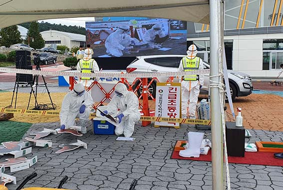 Äڷγª19 È®»ê¿¡ µû¶ó ºñ´ë¸é¿¡¼ 3³â ¸¸¿¡ ÁýÇÕÈÆ·ÃÀ¸·Î Ä¡·¯Áø À̳¯ ÈÆ·Ã¿¡´Â °ø¹«¿ø, À¯°ü±â°ü¡¤»ý»êÀÚ´Üü µî 100¿© ¸íÀÌ Âü¼®Çß´Ù.