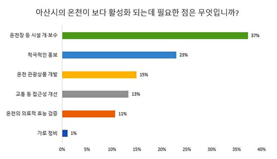 ¾Æ»ê½ÃÀÇ ¿ÂõÀÌ È°¼ºÈµÇ±â À§Çؼ´Â ¡®¿ÂõÀå µî ½Ã¼³ °³¡¤º¸¼ö(37%)¡¯, ¡®Àû±ØÀûÀÎ È«º¸(23%)¡¯, ¡¯¿Âõ °ü±¤»óǰ °³¹ß(15%)¡¯ µîÀÌ ÇÊ¿äÇÏ´Ù°í ´äÇß´Ù.