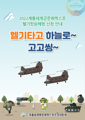 À̹ø Çï±â ž½ÂüÇèÀº Àü±¹¹ÎÀ» ´ë»óÀ¸·Î Çà»çÀå Àαٿ¡ ÀÖ´Â °è·æ´ë Çï±âÀå¿¡¼ ½Ã´©Å©(CH-47) 2±â¸¦ Ȱ¿ëÇØ Çà»ç±â°£ 1ÀÏ 2ȸ 120¸í¾¿, 8Àϰ£ ÁøÇàÀ» ÅëÇØ ¿¬Àοø 960¸íÀÌ Ã¼Çè¿¡ Âü¿©ÇÑ´Ù´Â °èȹÀÌ´Ù.