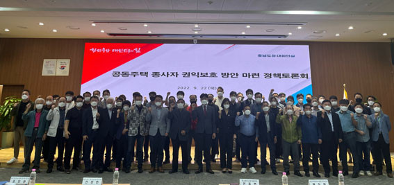 À̹ø Á¤Ã¥ Åä·Ðȸ´Â Á¦1Â÷ °øµ¿ÁÖÅà Á¾»ç ³ëµ¿ÀÚÀÇ ±ÇÀÍ º¸È£¸¦ À§ÇÑ »ó»ý Çù¾àÀÇ ¼º°ú¸¦ ¹ÙÅÁÀ¸·Î ÀÔÁֹΰú Á¾»çÀÚÀÇ »ó»ýÀ» ÅëÇÑ °øµ¿Ã¼ ¹®È È®»êÀ» µµ¸ðÇϰíÀÚ ¸¶·ÃÇß´Ù.