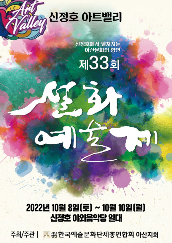 ¾Æ»ê½Ã 2022 Á¦33ȸ ¼³È¿¹¼úÁ¦°¡ ¿À´Â 10¿ù 8~10ÀÏ ¾ÆÆ®¹ë¸® Á¶¼º °ø°£ÀÎ ½ÅÁ¤È£ ¾ß¿ÜÀ½¾Ç´ç ¹× Àܵð±¤Àå¿¡¼ ¸·À» ¿Ã¸°´Ù.