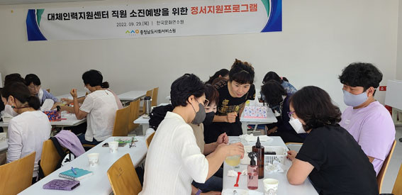 À̳¯ ÇÁ·Î±×·¥Àº Çѱ¹¹®È¿¬¼ö¿ø(Ãæ³² °øÁÖ)¿¡¼ ÁøÇàµÆÀ¸¸ç ¼¾ÅÍ Á¾»çÀÚÀÇ ¼ÒÁø¿¹¹æÀ» À§ÇÏ¿© Èú¸µ¾Æ·Î¸¶Å×¶óÇÇ¿Í µµÀÚ±â ÆäÀÎÆÃÀÌ ÁøÇàµÆ´Ù.