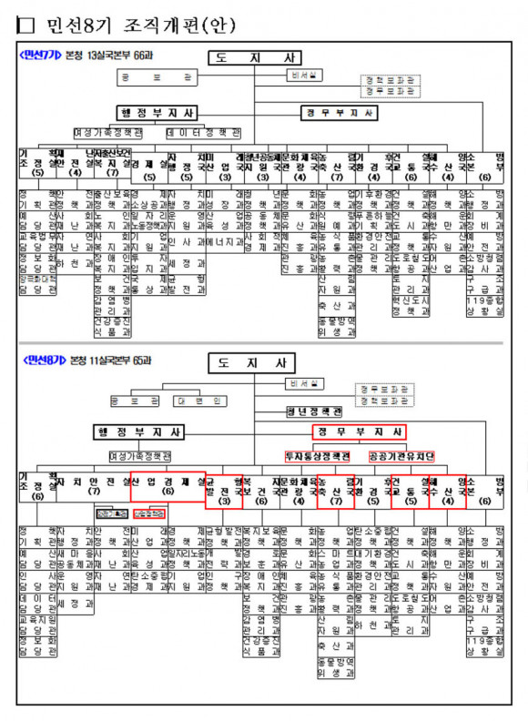 Á¶Á÷°³Æí¾È¿¡ µû¸£¸é, µµ º»Ã» ±â±¸´Â ÇöÀç 13°³ ½Ç¡¤±¹ 66°³ °ú¿¡¼ 11°³ ½Ç¡¤±¹ 65°³ °ú·Î 2°³ ±¹ 1°³ °ú¸¦ ÁÙ¿´´Ù.