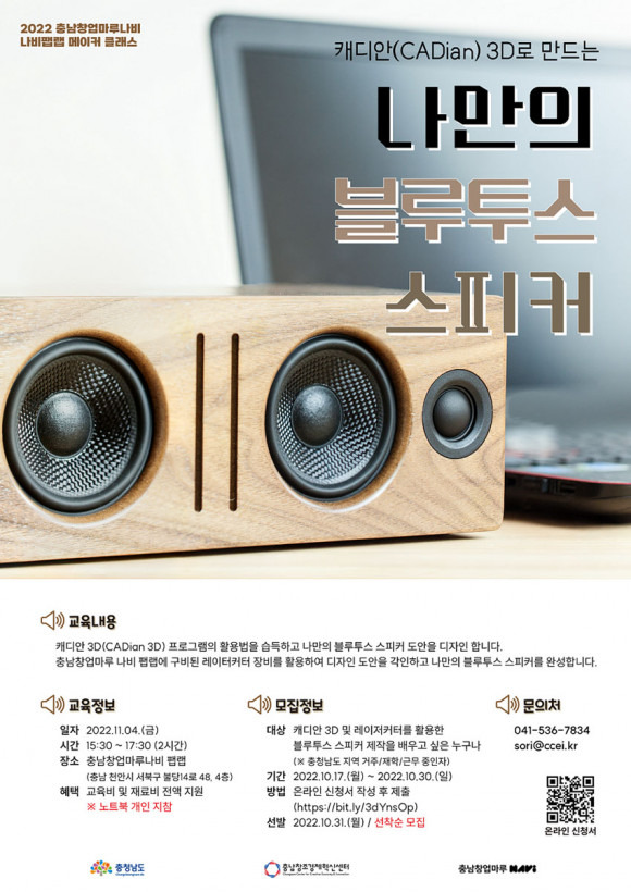 Ãæ³²Ã¢Á¶°æÁ¦Çõ½Å¼¾ÅÍ(ÀÌÇÏ Ãæ³²¼¾ÅÍ)´Â ¿À´Â 11¿ù 4ÀÏ¿¡ 2022 Ãæ³²Ã¢¾÷¸¶·ç³ªºñ ÆÕ·¦ ¸ÞÀÌÄ¿ Ŭ·¡½º ¡®³ª¸¸ÀÇ ºí·çÅõ½º ½ºÇÇÄ¿ Á¦ÀÛ°úÁ¤¡¯À» ÁøÇàÇÑ´Ù°í ¹àÇû´Ù.