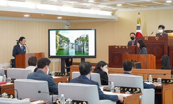 ÀÌ¾î ¸ÍÀǼ® ÀÇ¿øÀº ¡°Á¤ÁÖ¿©°ÇÀÇ °¡Àå Áß¿äÇÑ ¿ä¼Ò°¡ µµ·Î¿Í ±³Å롱À̶ó¸ç µµ·Î¿Í ±³ÅëÀ» ¡®¸ö¿¡ È帣´Â ÇÇ¡¯¿¡ ºñÀ¯Çß´Ù. ³Ê¹« ¿À·§µ¿¾È ÁöüµÈ Áß·Î3-1È£(½Ã¹Î·Î) È®¡¤Æ÷Àå°ø»ç¿¡ ´ëÇØ ¡°¾Æ»ê½Ã´Â ¹®Ã¼ºÎÈﺸ´Ù µµ½Ã±â¹Ý½Ã¼³¿¡ ÁßÁ¡À» µÎ¸é¼ ²À ÇÊ¿äÇÑ »ç¾÷¿¡ Áö¹æÃ¤¸¦ ½á¾ß Çϴµ¥ ¹Ù·Î ÀÌ ÇöÀåÀÌ´Ù¡±¶ó¸ç Á¶¼ÓÇÑ ½ÃÇàÀ» ÁÖ¹®Çß´Ù.