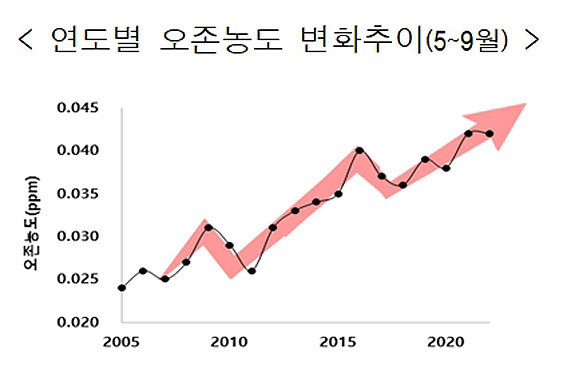 ±è¿Á º¸°Çȯ°æ¿¬±¸¿øÀåÀº ¡°¿ÃÇØ °í³óµµ ¿ÀÁ¸¹ß»ý Ư¼ºÀº 5-8¿ù¿¡ ÁýÁßµÈ ¿¹³â°ú ´Þ¸® 9-10¿ù¿¡µµ 30%(5ÀÏ)°¡ ¹ß»ýÇÏ´Â Çö»óÀ» º¸¿´´Ù¡±¸ç ¡°Ãæ³²Àº 2005³â ÀÌÈÄ ³ª»Ý´Ü°è(1½Ã°£ Æò±Õ³óµµ 0.091ppm)ÀÌ»ó ¹ß»ýÇÑ È½¼ö°¡ ²ÙÁØÈ÷ Áõ°¡Çϰí ÀÖ´Â ¸¸Å °í³óµµ ¿ÀÁ¸¹ß»ý Àú°¨À» À§ÇÑ ´ëÃ¥ ¸¶·ÃÀÌ ÇÊ¿äÇÏ´Ù¡±°í ¸»Çß´Ù.