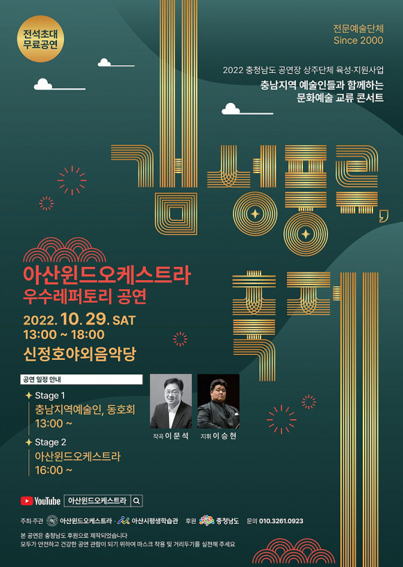 Àü¹®¿¹¼ú´Üü ¾Æ»êÀ©µå¿ÀÄɽºÆ®¶ó(´ÜÀå Á¶ÇѼö)ÀÇ ¿ì¼ö·¹ÆÛÅ丮 °ø¿¬ÀÇ ÀÏȯÀ¸·Î ¿À´Â 10¿ù 29ÀÏ ¿ÀÀü 10½Ã~¿ÀÈÄ 6½Ã±î½Ã ¾Æ»ê½Ã ½ÅÁ¤È£ ¾ß¿ÜÀ½¾Ç´ç¿¡¼ ¡®°·¼ºÇ³·ù, ÃàÁ¦¡¯ °ø¿¬À» °®´Â´Ù.