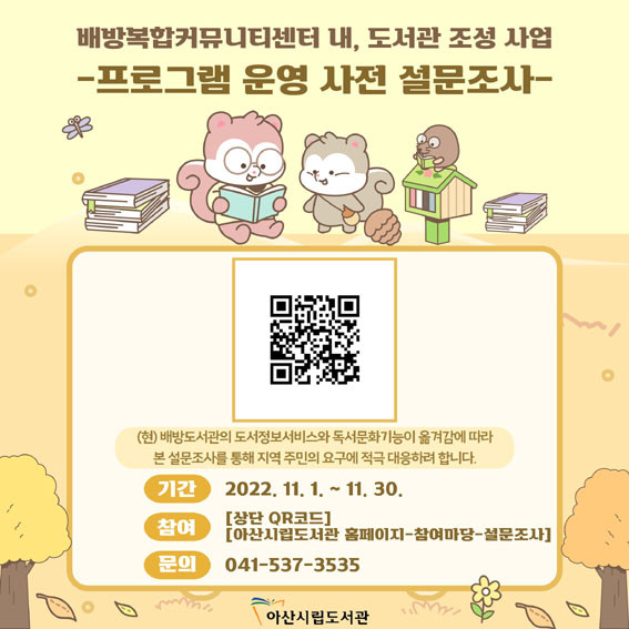 ƯÈ÷ ½Ã¹ÎÀÇ ¸¹Àº Âü¿©¸¦ À§ÇØ ¾Æ»ê½Ã¸³µµ¼°ü ÀÚ·á½Ç ³»¿¡ °ü·Ã QRÄڵ带 È«º¸ÇßÀ¸¸ç, µµ¼°ü ´©¸®Áý(http://ascl.asan.go.kr) Âü¿©¸¶´ç-¼³¹®Á¶»ç¿¡ Á¢¼ÓÇÏ¸é ¾Æ»ê½Ã¹ÎÀº ¹°·Ð ÀáÀçÀûÀÎ ÀÌ¿ëÀÚµµ ¼³¹®¿¡ Âü¿©ÇÒ ¼ö ÀÖ´Ù.