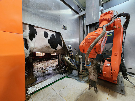 Á¥¼Ò°¡ ÂøÀ¯½Ç¿¡ µé¾î°¡ ÀÚµ¿ ±Þ¿©µÈ »ç·á¸¦ ¸Ô´Â »çÀÌ ·Îº¿ÀÌ ÂøÀ¯ÄÅÀ» ºÎÂøÇØ ¿ìÀ¯¸¦ Â¥´Â ¹æ½ÄÀ¸·Î ÀÛµ¿ÇÑ´Ù.