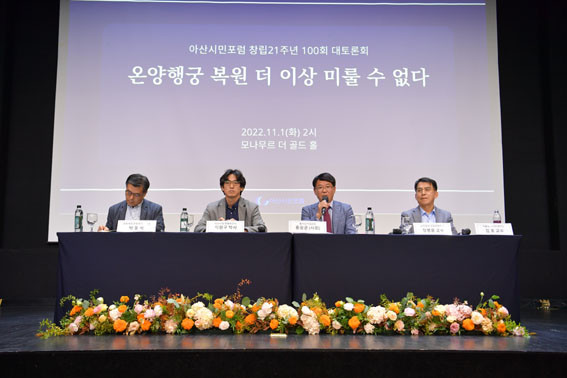¾Æ»ê½Ã¹ÎÆ÷·³ À̰ǿµ ´ëÇ¥´Â Àλ縻·Î ¡°¾Æ»êÀÇ Á¤Ã¼¼ºÀ» »ó¡ÇÏ´Â ¿Âõ°ú ±×°ÍÀÇ ¿ª»ç¼ºÀ» ´ãº¸ÇÏ´Â ¿Â¾çÇà±Ã¿¡ ´ëÇÑ ¹®Á¦ÀǽÄÀ» ´ã¾Æ 100ȸÀÇ ¹«°Ô°¨À» ½Æ´Âµ¥ ȸ¿øµéÀÌ ÀǰßÀ» ¸ð¾Ò´Ù¡±°í ÁÖÁ¦ ¹è°æÀ» ¼³¸íÇϸç, ¡°º¹¿ø ³íÀï¿¡ ³Ê¹« ¸¹Àº ½Ã°£À» ¼Ò¿äÇß´Ù. ÀÌÁ¦´Â ¹«Á¶°Ç ¾î¶»°Ô º¹¿øÇÏ´À³Ä¿¡ ÁýÁßÇØ¾ß ÇÑ´Ù¡±°í ¸»Çß´Ù.