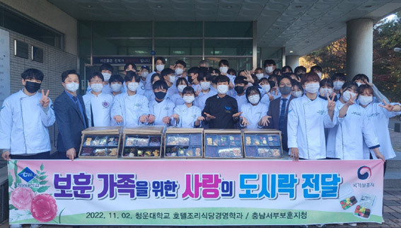 û¿î´ëÇб³ È£ÅÚÁ¶¸®½Ä´ç°æÇаú ¹èÀÎÈ£ ÇаúÀåÀ» ºñ·ÔÇÑ Áöµµ±³¼ö¿Í ÇлýµéÀº ´ß°õÅÁ, Àüº¹±¸ÀÌ, Çܹö°Å½ºÅ×ÀÌÅ©, Àâä, ´Þ°¿¸»ÀÌ µî ¹Ø¹ÝÂù°ú °úÀÏÀÌ ´ã±ä µµ½Ã¶ôÀ» À̸¥ ¾ÆÄ§ºÎÅÍ Á¤¼º²¯ ¸¸µé°í Æ÷ÀåÇϸç, ±¹°¡À¯°øÀÚ¿Í º¸Èư¡Á·ÀÇ °Ç°°ú ÇູÀ» ±â¿øÇÏ´Â ¶æ±íÀº ½Ã°£À» °¡Á³´Ù.
