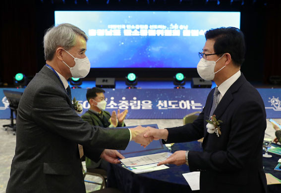 ¾ç Áö»ç´Â ¡°Åº¼ÒÁ߸³Àº ´õ ÀÌ»ó ´ÊÃâ ¼ö ¾ø´Â Àü ¼¼°èÀû °úÁ¦¡±¶ó¸ç ¡°Á¤ÀǷοî Àüȯ°ú °ú°¨ÇÑ Çõ½Å µîÀ» ÅëÇØ Ãæ³²ÀÌ ´ëÇѹα¹À» ³Ñ¾î ¼¼°è ź¼ÒÁ߸³À» ¼±µµÇØ ³ª¾Æ°¡°Ú´Ù¡±°í °Á¶Çß´Ù.