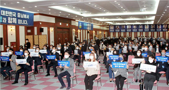 °ÈÆ½Ä Ãæ³²µµ´çÀ§¿øÀåÀº ¡°¿À´Ã ²Ù·ÁÁø ¼±´ëÀ§´Â 2030 ÀþÀº ¼¼´ë°¡ Àü¸é¿¡ ¼°í Ãæ³²Áö¿ª ±¹È¸ÀÇ¿ø°ú Áö¿ªÀ§¿øÀåµéÀÌ µÚ¸¦ ¹ÞÃÄÁÖ´Â Àü ¼¼´ë¸¦ ¾Æ¿ì¸£´Â ¿ªµ¿ÀûÀÎ Ãæ³²´ëÀüȯ ¼±´ëÀ§¡±¶ó°í ¼Ò°³Çϰí, ¡°3¿ù 9ÀÏÀº ¹ÎÁÖ´çÀÌ ±¹¹Î²² Àç½ÅÀÓ ¹Þ´Â ³¯ÀÌ µÇ¾î¾ß ÇÑ´Ù. Ãæ³²ÀÌ Á¤±Ç ÀçâÃâÀÇ Áß½ÉÀÌ µÇ´Â ³¯ÀÌ µÇ¾î¾ß ÇÑ´Ù.¡±¸ç, ¡°Ãæ³²ÀÌ ´ë¼±½Â¸®¸¦ À§ÇØ ÈûÀ» ¸ð¾Æ ´Þ¶ó¡±°í ´çºÎÇß´Ù.