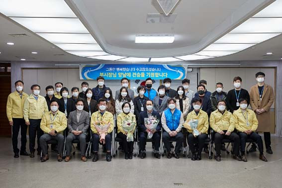 ÀÌ¿¡ ¾Õ¼ À± ºÎ½ÃÀåÀº ÀÌÀÓ½ÄÀ» ÇÒ ¿¹Á¤À̾úÀ¸³ª, Äڷγª19 µî »óȲ ¿©°ÇÀ¸·Î 12¿ù 27ÀÏ ÁÖ¿ä ¾÷¹« ¹× Äڷγª19 ÃßÁø»óȲº¸°íȸ Á¾·á ÈÄ ÀÌÀÓ Àλ縦 °£¼ÒÇÏ°Ô °¡Á³À¸¸ç, ±×µ¿¾È ¾Æ»ê¹ßÀüÀ» À§ÇØ ³ë·Â¿¡ °¨»çÀÇ ¸¶À½À» ´ã¾Æ ¾Æ»ê½Ã °ø¹«¿øÀ» ´ëÇ¥ÇØ Á÷¿øÀÇ ²É´Ù¹ß Àü´Þ·Î ÀÌÀÓ½ÄÀ» ´ë½ÅÇß´Ù.