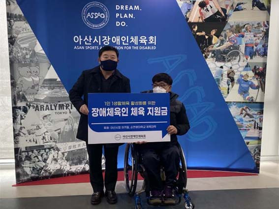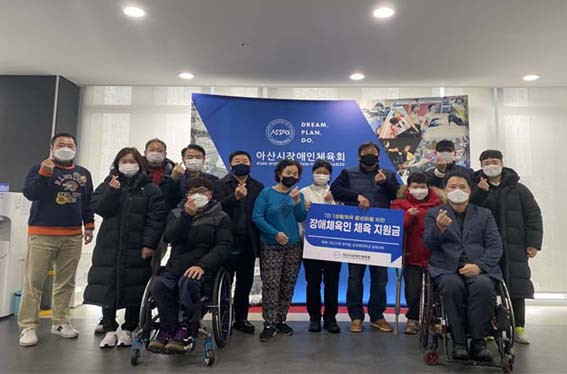 ƯÈ÷ ¾Æ»ê½Ãû ÇÏŰÆÀ(°¨µ¶ ÀÓÈï½Å)Àº ¸Å³â üÀ°Áö¿ø±ÝÀ» ¾Æ»ê½ÃÀå¾ÖÀÎüÀ°È¸(ȸÀå ¿À¼¼Çö)¿¡ ±âÅ¹ÇØ ¾î·Á¿î ¿©°Ç ¼Ó¿¡¼ ²ÞÀ» ÀÏÁö ¾Ê°í ¿îµ¿ÇÏ´Â ¾Æ»ê½Ã Àå¾ÖüÀ°Àε鿡°Ô Èñ¸ÁÀ» ÁÖ¾ú´Ù.