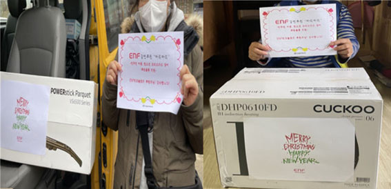 °á¿¬ÈÄ¿ø»ç¾÷ ¡®¾Æ¸®¾Æ¸®¡¯¸¦ ÅëÇØ ENFÅ×Å©³î·ÎÁöÀÇ ¿¬¸» ¼±¹°À» ¹ÞÀº ÀÌ ¸ð ¾Æµ¿Àº ¡°ENFÅ×Å©³î·ÎÁöÀÇ Áö¿øÀ¸·Î ÀúÈñ Áý¿¡ ²À ÇÊ¿äÇÑ Ã»¼Ò±â¸¦ ¹ÞÀ» ¼ö ÀÖ¾î¼ °¨µ¿ÀÌ´Ù. ¾Æºü°¡ ²À ÇÊ¿äÇÏ´Ù°í ÇØ¼ Àúµµ ¸¶À½ÀÌ ³õÀδ١±¶ó¸ç ¿¬¸» ¼±¹° Áö¿ø¿¡ °¨»ç Àλ縦 ÀüÇß´Ù.