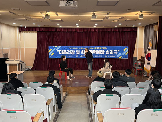 ¡®¸¶À½°Ç° ¹× Çб³Æø·Â¿¹¹æ ½É¸®±Ø¡¯Àº ¾Æ»ê½Ã Ư¼ºÈ »ç¾÷ ¡®»çȸºÀ»ç Ưº°±³À° ¹Ý¿Ã¸²#¡¯ÇÁ·Î±×·¥ÀÇ ÀÏȯÀ¸·Î, ½É¸®±ØÀ» ÅëÇØ Çб³Æø·Â »óȲ¿¡ ´ëÇÑ ´ëó¹ýÀ» ½º½º·Î »ý°¢Çϰí Çб³Æø·Â »óȲ¿¡¼ ¹æ¾îÀÚ ¿ªÇÒÀ» ÇÒ ¼ö ÀÖµµ·Ï ±³À°Çϱâ À§ÇØ ¸¶·ÃµÆ´Ù.