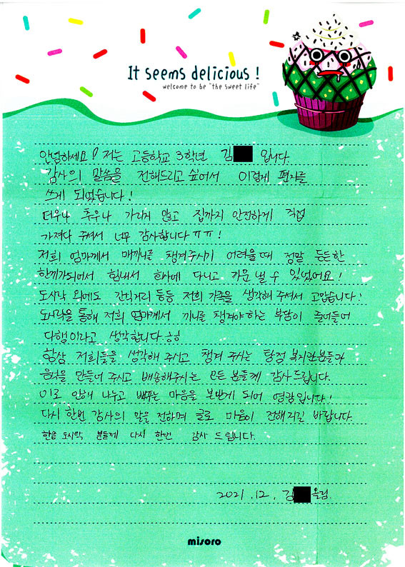 À̹ø °¨»çÆíÁö´Â µµ½Ã¶ôÀ» ÈÄ¿ø¹ÞÀº ¾Æµ¿¡¤Ã»¼Ò³âÀÌ Á÷Á¢ ÀÛ¼ºÇßÀ¸¸ç, Äڷγª19 È®»êÀ¸·Î ¾î·Á¿î »óȲ ¼Ó¿¡¼µµ °á½Ä ¿ì·Á ¾Æµ¿¡¤Ã»¼Ò³âµé¿¡°Ô µû¶æÇÑ ÇÑ ³¢¸¦ ³ª´©¾îÁØ ÈÄ¿øÀÚ¿¡°Ô ±íÀº °¨»çÀÇ Àλ縦 ÀüÇÏ´Â ³»¿ëÀÌ ´ã°å´Ù.