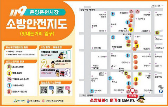 À̹ø ¼Ò¹æ¾È³»Áöµµ´Â ¿Â¾ç¿Âõ½ÃÀå ³» ¼Ò¹æ¾È³»½Ã¼³ À§Ä¡¿Í ½ÃÀåÈÀç ½Ã ´ëÀÀ ¿ä·ÉÀ» »ðȸ¦ ÀÌ¿ëÇØ Ä£¼÷ÇÏ°í ¾Ë±â ½±°Ô ´ã¾Ò°í, QR ¹ÙÄڵ带 ÀÌ¿ë ¾ðÁ¦µç ½ÇÁ¦ ¿Â¾ç¿Âõ½ÃÀå ¼Ò¹æ½Ã¼³ ÀÌ¿ë ¹æ¹ýÀ» µ¿¿µ»óÀ¸·Î È®ÀÎÇÒ ¼ö ÀÖ°Ô Á¦À۵ƴÙ.
