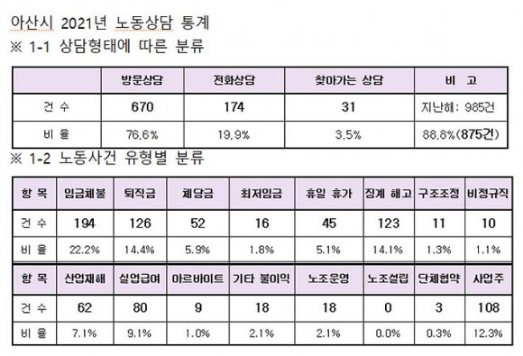 ¾Æ»ê½Ã, 2021³â ¿¬°£ ³ëµ¿»ó´ã Åë°è ¹ßÇ¥