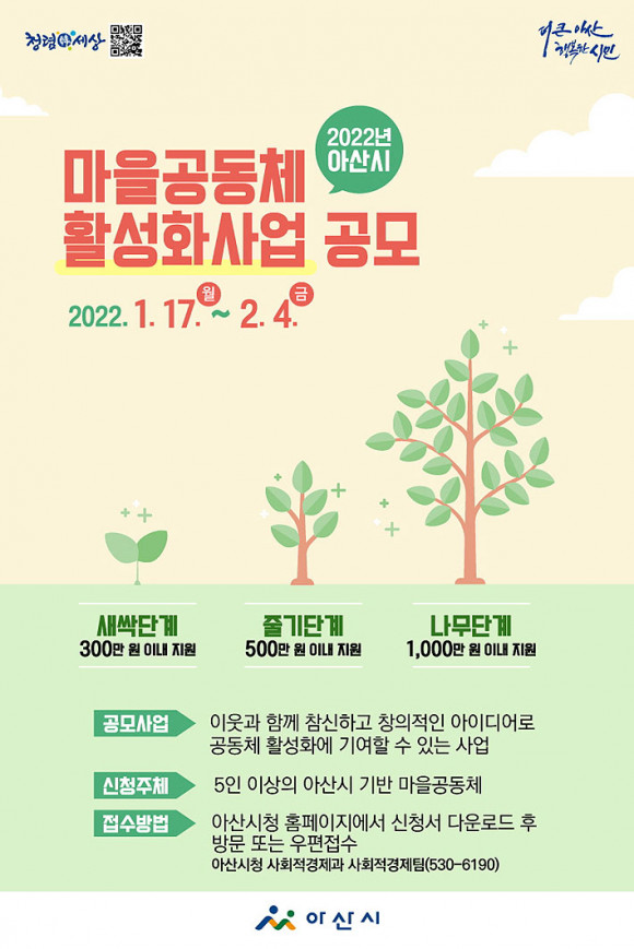 ¾Æ»ê½Ã°¡ ´ÙÀ½ ´Þ 4ÀϱîÁö ¡®2022³âµµ ¾Æ»ê½Ã ¸¶À»°øµ¿Ã¼ Ȱ¼ºÈ»ç¾÷¡¯À» °ø¸ðÇÑ´Ù.
