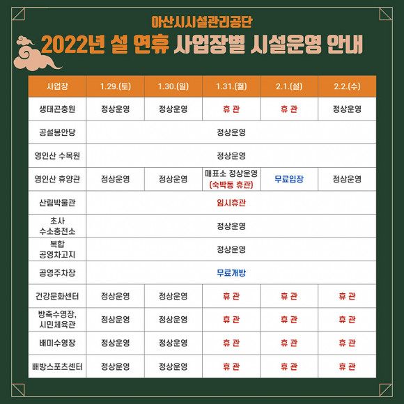 ¿µÀλêÀÚ¿¬È޾縲Àº ¼³ ´çÀÏÀÎ 2¿ù 1ÀÏ ¹«·á °³¹æµÇ¸ç, »ê¸²¹Ú¹°°üÀº ¿¬ÈޱⰣ Àü¸é ÈÞ°üÇÑ´Ù.
