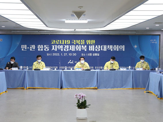 | | ¡è¡è ¡ã¹Î°ü ÇÕµ¿ Áö¿ª°æÁ¦È¸º¹ ºñ»ó´ëåȸÀÇ ÁøÇà Àå¸é <»çÁøÁ¦°ø=¾Æ»ê½Ã> | ¨Ï ¿Â¾ç½Å¹® | | ¾Æ»ê½Ã°¡ 1¿ù 27ÀÏ Äڷγª19 È®»êÀ¸·Î »ç°¢Áö´ë¿¡ ³õÀÎ ¼Ò»ó°øÀÎ(ÀÚ¿µ¾÷), °Ç¼³, ³ó¾÷ µî 3°³ ºÐ¾ß Á÷´É´Üü ´ëÇ¥µé°ú ¡®¹Î°ü ÇÕµ¿ Áö¿ª°æÁ¦È¸º¹ ºñ»ó´ëåȸÀÇ¡¯¸¦ ¿°í Áö¿ª°æÁ¦ »óȲÁ¡°Ë°ú ´ëÀÀ ¹æ¾ÈÀ» ¸ð»öÇß´Ù.