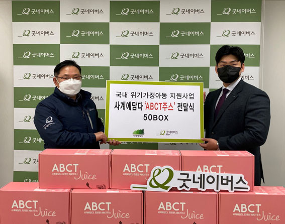 Á¤¿ìÁø ´ëÇ¥´Â ±Â³×À̹ö½º ÃæÃ»º»ºÎ¸¦ ÅëÇØ ABCT °Ç°ÁÖ½º ÃÑ 150¸¸ ¿ø »ó´çÀÇ ½Ä·áǰÀ» ÈÄ¿øÇß´Ù. Àü´ÞµÈ ½Ä·áǰÀº ±¹³» »çȸº¹Áö½Ã¼³ ¹× Àú¼Òµæ °¡Á¤À» À§ÇØ Áö¿øµÉ ¿¹Á¤ÀÌ´Ù.