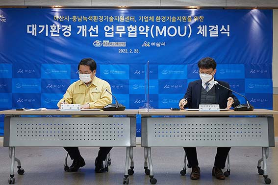 ÇÑÆí À̳¯ MOU¸¦ ü°áÇÑ ¾Æ»ê½Ã¿Í Ãæ³²³ì»öȯ°æÁö¿ø¼¾ÅÍ´Â ¾Õ¼ ´ë±â¹æÁö½Ã¼³ ±³Ã¼»ç¾÷À» ÅëÇØ ±â¾÷ÀÇ ºÎ´ãÀ» ¿ÏÈÇÏ°í ´ë±â¿À¿°À» °³¼±ÇÏ´Â 1¼®2Á¶ÀÇ ¼º°ú¸¦ °ÅµÐ ¹Ù ÀÖ´Ù.