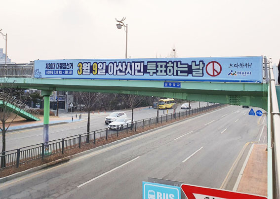 ¿ì¼± ¾Æ»ê½Ã´Â °ü³» À¯µ¿ Àα¸°¡ ¸¹Àº µµ·Î, ¿Â¾ç¿Âõ½ÃÀå µî 63°³¼Ò¿¡ ÅõÇ¥ µ¶·Á ¸Þ½ÃÁö¿Í »çÀüÅõÇ¥ ÀÏÁ¤ µîÀ» ¾È³»ÇÑ È«º¸ Çö¼ö¸·À» °Ô½ÃÇß´Ù.