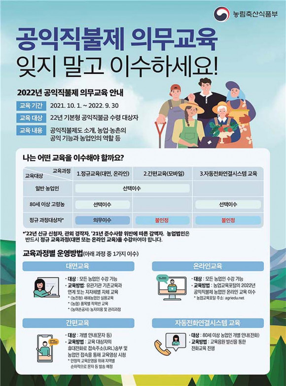80¼¼ ÀÌ»ó ³ó¾÷ÀÎ, 5ºÐ ûÃë·Î °øÀÍÁ÷ºÒÁ¦ ±³À°À̼ö °¡´É