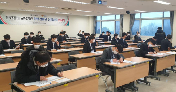 | | ¡è¡è ¡ã¼±¹®´ë ÁÖ»êÇÐÆò»ý±³À°¿øÀÌ ¹Î°£°æºñ ±³À°±â°üÀ¸·Î ÁöÁ¤µÇ¸é¼ ÀϹݰæºñ¿ø ½ÅÀÓ±³À°À» ÁøÇàÇϰí ÀÖ´Ù. <»çÁøÁ¦°ø=¼±¹®´ëÇб³> | ¨Ï ¿Â¾ç½Å¹® | | ¼±¹®´ëÇб³ ÁÖ»êÇÐÆò»ý±³À°¿ø(¿øÀå ±èÈ«¼®)Àº Áö³ 2020³â 12¿ù ¾Æ»êÁö¿ª ÃÖÃÊ·Î ¡®¹Î°£°æºñ ±³À°±â°ü¡¯À¸·Î ¼±Á¤µÇ¸é¼ ÀϹݰæºñ¿ø ½ÅÀÓ±³À°À» ÁøÇàÇϰí ÀÖ´Ù.