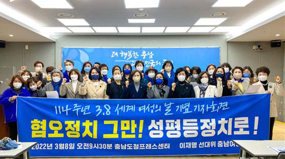 Ãæ³²¿©¼ºº»ºÎ ±¤¿ª¡¤±âÃÊ ¿©¼ºÀÇ¿ø°ú ȸ¿ø 30¿©¸íÀº À̳¯ ¿ÀÀü 9½Ã 30ºÐ Ãæ³²µµÃ» ÇÁ·¹½º¼¾ÅÍ¿¡¼ ¡°¿©¼ºÁ¤Ã¥¿¡ ´ëÇÑ ÀÌÇØ°¡ ÀüÇô ¾ø´Â À±¼®¿ Èĺ¸ º¸´Ù´Â ±¹°¡µ¹º½Ã¥ÀÓÁ¦, ¼º¹üÁË ÇÇÇØÀÚ ¿ø½ºÅé Áö¿ø¼¾ÅÍ Àü±¹ È®´ë Á¤Ã¥ µî Áø¼ºÇÑ ¼ºÆòµî ±¹°¡¸¦ ¸¸µé ½Ç·ÂÀ» °¡Áø ÀÌÀç¸í Èĺ¸¿¡°Ô ÅõÇ¥ÇØ ´Þ¶ó¡±°í ´çºÎÇß´Ù.
