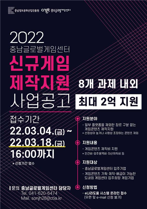 Ãæ³²±Û·Î¹ú°ÔÀÓ¼¾ÅÍ, ½Å±Ô°ÔÀÓ Á¦ÀÛÁö¿ø °ø¸ð