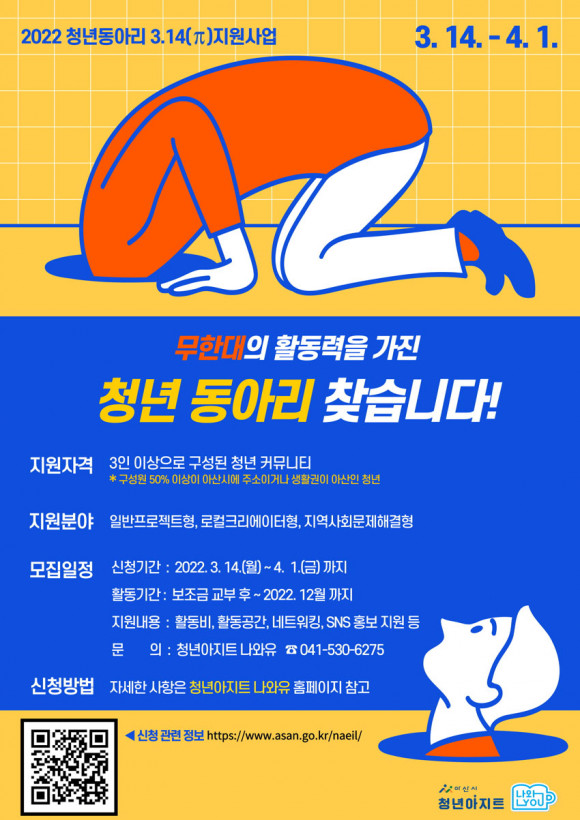 ¾Æ»ê½Ã°¡ ¡®2022³â û³âµ¿¾Æ¸® 3.14 Áö¿ø»ç¾÷¡¯¿¡ Âü¿©ÇÒ ´Üü¸¦ °ø°³ ¸ðÁýÇÑ´Ù.