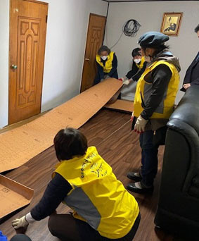 À̳¯ ¿µÀθé ÇູŰ¿òÃßÁø´Ü ÈÄ¿øÀ¸·Î °Å½Ç Àüü º®¸éÀ» ±³Ã¼ÇßÀ¸¸ç, ¢ßKCC±Û¶ó½º ¾Æ»ê°øÀå(°øÀåÀå ±èÀå¿í)ÀÇ ÈÄ¿ø°ú ¿µÀθé ÇູŰ¿òÃßÁø´Ü°ú ¾Æ»êºñÀüºÀ»ç´Ü(ÀÌ»ç õöȣ)ÀÇ ³ë·Â ºÀ»ç·Î °Å½Ç, ¹æ, Çö°ü ÀåÆÇÀ» ±³Ã¼Çß´Ù.