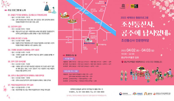 Á¶¼±Åë½Å»ç Àι®ÇѸ¶´çÀº ÃæÃ»³²µµ¿ª»ç¹®È¿¬±¸¿øÀÌ ¹®ÈÀçû, ÃæÃ»³²µµ, °øÁÖ½Ã¿Í ÇÔ²² ÁøÇàÇϰí ÀÖ´Â ¡®2022 ¼¼°èÀ¯»ê Ȱ¿ëÇÁ·Î±×·¥ - Á¶¼±Åë½Å»ç °øÁÖ¿¡ ³³½Ã¾ú³×¡¯ÀÇ ÀÏȯÀ¸·Î ´Ù¾çÇÑ Ã¼Çè°ú ±³À° ÄÜÅÙÃ÷¸¦ ÅëÇØ Á¶¼±Åë½Å»ç±â·Ï¹°ÀÇ ¼¼°èÀ¯»êÀû °¡Ä¡¸¦ ÀÌÇØÇϰí üÇèÇÏ´Â ¿ª»ç¹®ÈÇà»çÀÌ´Ù.