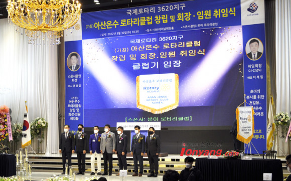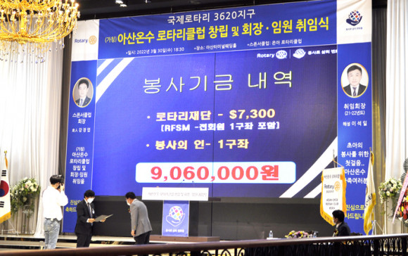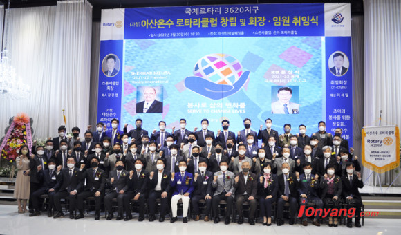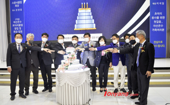 Áö³ 3¿ù 30ÀÏ ¾Æ»êÅ͹̳οþµùȦ¿¡¼ °³ÃÖµÈ ¾Æ»ê¿Â¼ö·ÎŸ¸®Å¬·´ ⸳½Ä ¹× ȸÀå ÃëÀÓ½ÄÀº ±¹Á¦·ÎŸ¸® 3620Áö±¸ ¼ºÁö ¹®»ó½Ä ÃÑÀç, ¿À¼¼Çö ¾Æ»ê½ÃÀå, ȲÀ縸 ¾Æ»ê½ÃÀÇȸ ÀÇÀåÀ» ºñ·ÔÇÑ ½ºÆù¼ Ŭ·´ÀÎ ¿Â¾Æ·ÎŸ¸®Å¬·´ ÁÖÀÎ °°æ¿± ȸÀå ¹× È¸¿ø µîÀÌ Âü¼®ÇÑ °¡¿îµ¥ °ÅÇàµÆ´Ù.