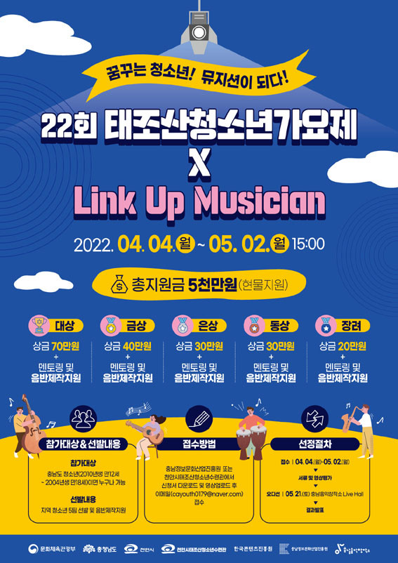 ¡®¸µÅ©¾÷¹ÂÁö¼Ç(Link Up Musician)¡¯Àº ¹Ì·¡ ¹ÂÁö¼Ç ¾ç¼º ¹× ¹ß±¼À» À§ÇØ ¹ÂÁö¼ÇÀ» ²Þ²Ù´Â û¼Ò³âÀ» ´ë»óÀ¸·Î 5¿ù 2ÀϱîÁö ¸ðÁýÇÑ´Ù.