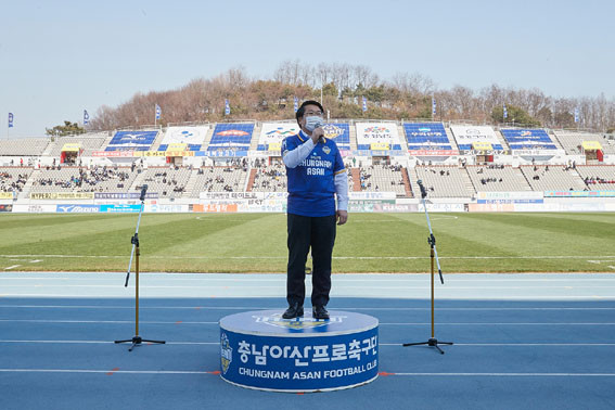 À̳¯ ÇöÀå¿¡ Âü¼®ÇÑ ±¸´ÜÁÖ ¿À¼¼Çö ½ÃÀåÀº ¡°Äڷγª19ÀÌÈÄ ¿À´Ã°ú °°ÀÌ ±â»Û ³¯ÀÌ ¸î ¹ø ¾ø¾ú´Ù. ÁÁÀº »ç¶÷µé°ú ÇÔ²² ÁÁÀº ¼ø°£À» ÇÔ²² ÇÏ´Â °Í ¸¸Å ÇູÇÑ ÀÏÀº ¾ø´Ù¡±¸ç, ¡°¿À´Ã ½Â¸®¸¦ À§ÇØ ÃÖ¼±À» ´ÙÇØ ÁØ Ãæ³²¾Æ»êFC ¼±¼öµé°ú Ȩ °³¸·ÀüÀ» ½Ã¹Îµé°ú ÇϳªµÇ´Â ÃàÁ¦ÀÇ ÀåÀ¸·Î ¸¸µé¾î ÁֽЏðµç ºÐµé°Ô °¨»çÇÑ ¸¶À½À» ÀüÇÑ´Ù.¡±¶ó°í ¸»Çß´Ù.