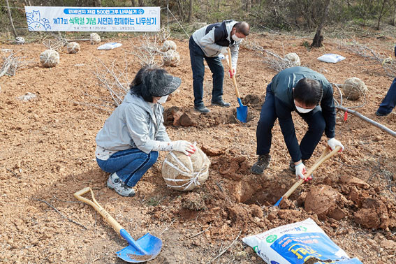 ±Ý¹ø ½Ä¸ñÀϱâ³ä ³ª¹«½É±â Çà»ç¿¡´Â ½Ã¹Î°ú ´Üü µîÀÌ Âü¿©ÇÏ¿© Á¶¼ºÇÑ ½Ã¹Îµ¿»ê°ú ¾Æ»ê½Ã »ê¸²Á¶ÇÕ¿¡¼ ¾à 500¸¸ ¿ø »ó´çÀÇ ¿Õº¢³ª¹«¸¦ Çå¼öÇØ Çå¼öµ¿»êÀ» Á¶¼ºÇßÀ¸¸ç ¾Æ»ê½Ã ¿ªÁ¡ »ç¾÷ÀÎ ¹Ì¼¼¸ÕÁö Àú°¨À» À§ÇÑ 500¸¸±×·ç ³ª¹«½É±âÀÇ 5°³³â »ç¾÷ÀÇ ¿ø³âÀ» ±â³äÇϱâ À§ÇØ °ü´ëÃÊ ÇлýµéÀÇ ¼Ò¸ÁÀ» ÀûÀº ¼Ò¸Á³ª¹«¸¦ ±â³ä ½Ä¼öÇß´Ù.