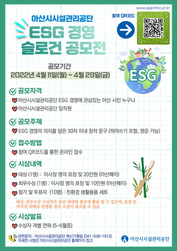 ¾Æ»ê½Ã½Ã¼³°ü¸®°ø´Ü, ESG °æ¿µ ½½·Î°Ç °ø¸ðÀü °³ÃÖ