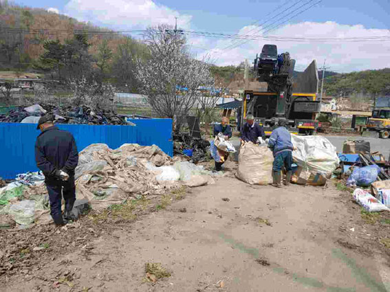 À̳¯ °Àå2¸® ÁֹΠ10¿© ¸íÀº ¸¶À» ¾È±æ°ú °æÀÛÁö µî¿¡ ¹æÄ¡µÈ ¿µ³óÆó±â¹°°ú °¢Á¾ »ýȰ¾²·¹±â¸¦ ¼ö°ÅÇϰí, ÀçȰ¿ë °¡´ÉÇÑ Æóºñ´ÒÀ» µû·Î ºÐ·ùÇØ ¾à 8ÅæÀÇ Æóºñ´ÒÀ» ó¸®Çϸç ÄèÀûÇÑ ¸¶À» ȯ°æ Á¶¼ºÀ» À§ÇØ ÈûÀ» ¸ð¾Ò´Ù.